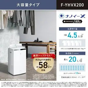 F-YHVX200は、パナソニックのハイブリッド方式衣類乾燥除湿機の中でも、4~5人家族用の最上位モデルになります。発売日は2022年5月11日です。