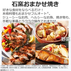 自動オーブン調理「石窯おまかせ焼き」は、肉・野菜・魚など好きな食材を並べてスタートすれば、自動でオーブン調理してくれるコースになります。