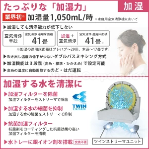 両モデルは空気清浄だけでなく、冬場にありがたい加湿もパワフル。