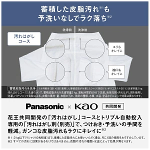 NA-LX127DL/Rでは、「汚れはがしコース」が新搭載。パナソニックと花王が共同開発した「汚れはがし剤」で、蓄積されたガンコな皮脂汚れもラクにキレイに落とせるようになりました。