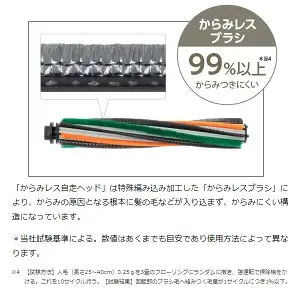 「からみレス自走ヘッド」搭載で、髪の毛の絡みつきを抑制し、フローリングも絨毯でも、様々なゴミをしっかりキャッチ!壁際のゴミもスッキリ。フローリングの菌までしっかり掃除できます。
