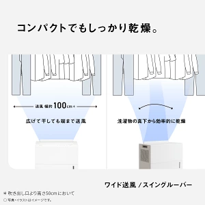 | 主な運転モード | 衣類乾燥 (速乾・標準・音ひかえめ) 除湿 (強・自動・弱) ケアモード (部屋・衣類・寝具・ケアキープ) |